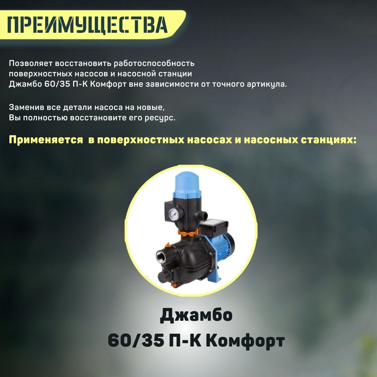 Данный элемент устанавливается под корпусом насосной части, и для замены не требует специализированных знаний и инструментов.