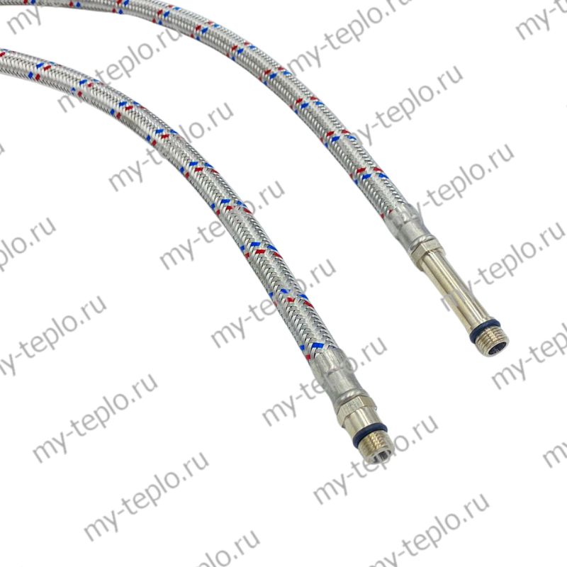 Дополнительная информацияПодводка к смесителю - представляет собой резиновую трубку, оплетённую металлической нитью с закреплёнными концевыми фитингами. Гибкая подводка применяется для монтажа приборов водоснабжения, отопительного и сантехнического оборудования, бытовых приборов, использующих воду, в случаях, когда сделать это с помощью труб технически невозможно или затруднительно.